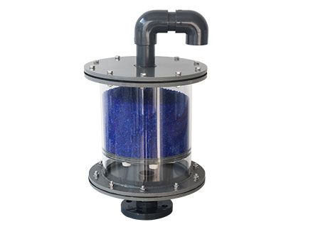 泛普環保生產的變色矽膠吸潮器作zuo用yong是shi阻zu止zhi空kong氣qi中zhong的de水shui份fen進jin入ru硫liu酸suan儲chu罐guan內nei,變bian色se矽gui膠jiao吸xi潮chao器qi工gong作zuo原yuan理li是shi采cai用yong幹gan式shi填tian料liao過guo濾lv吸xi水shui的de方fang式shi,在zai儲chu罐guan出chu液ye時shi,液ye位wei下xia降jiang,空kong氣qi首shou先xian經jing過guo吸xi濕shi填tian料liao,除chu去qu水shui份fen後hou幹gan燥zao的de空kong氣qi進jin入ru儲chu罐guan內nei。